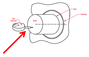 密封腔與軸中心線的垂直度應約為每 25 毫米密封腔孔 0.015 毫米(每 1 英寸密封腔孔 0.0005 英寸)。注意:確保軸端間隙不影響讀數。